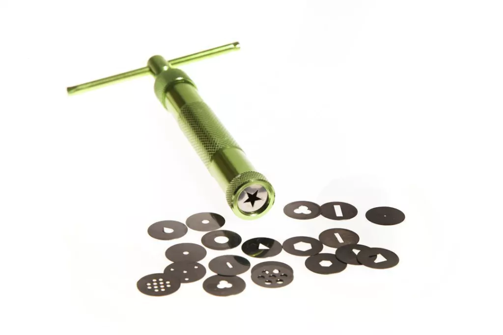 Extrusora de mano pequeña. Ideal para cerámica y porcelana. Incluye 20 formas intercambiables.