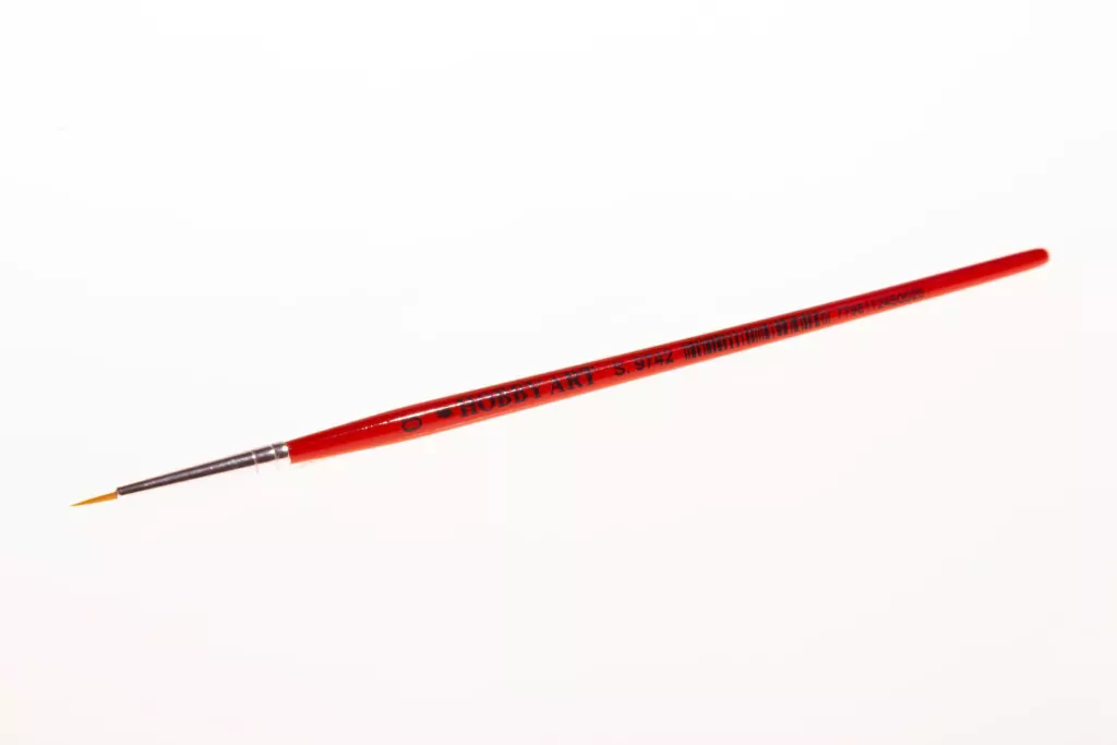 Pelo Toray. Redondo, virola de aluminio, mango corto rojo.