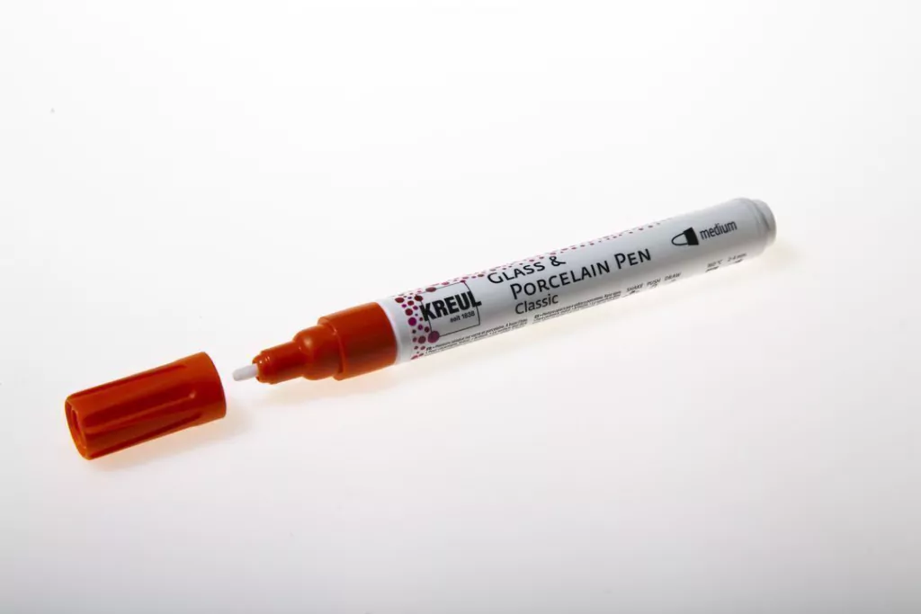 Rotulador de porcelana y vidrio KREUL. Podes escribir, dibujar y pintar en tazas, vasos, platos, jarrones, tazones de cereales, entre otros. La pintura es a base de agua y es ideal para diseños decorativos en vidrio, porcelana, cerámica, metal, acrílico y espejos. Una vez pintado, se debe cocinar en horno de cocina a 160°C durante 90 minutos. ¡Y obtendrás piezas coloridas únicas! Puntos coloridos, líneas precisas y mensajes cálidos.