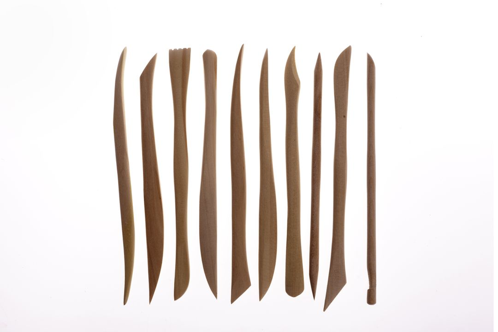 Set de 10 estécas dobles de madera. Todas de diferentes formas.