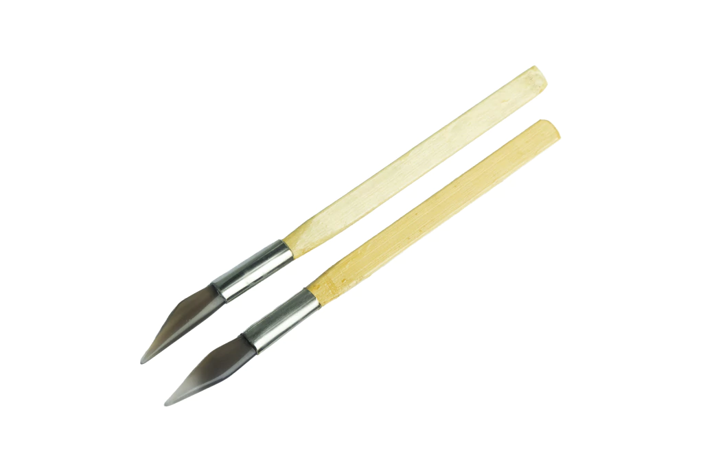 Kit de 2 bruñidores. Punta de piedra de ágata mineral (2 formas diferentes) y mango de madera.